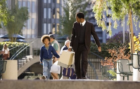 Кріс змінює одну роботу за іншою, тільки б забезпечити маленького сина. Але низькооплачуваної посади продавця недостатньо. Вони залишаються на вулиці. Однак ніщо не може змусити молодого батька опустити руки і перестати працювати заради майбутнього своєї дитини.