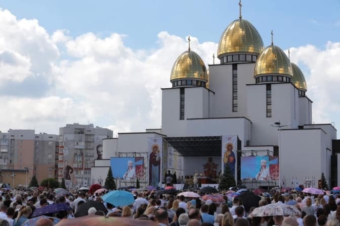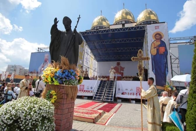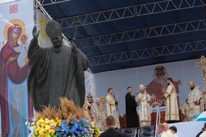 «На іподромі 26 і 27 червня 2001 року святий Іван Павло відправляв дві Літургії: першу в латинському обряді, в згодом – в греко-католицькому. На першій події було близько 300 тисяч вірян, наступного дня прибуло більше мільйона людей. Це було найчисленніше зібрання в історії України. Папа оголосив блаженними ісповідників та мучеників римо- і греко-католицьких церков. Пам'яткою цих історичних подій є храм і Центр св. Йоана Павла ІІ. На його території буде освячений пам'ятник Папі Івану Павлу ІІ», – зазначив Настоятель храму святого Йоана Павла ІІ, отець Григорій Драус.