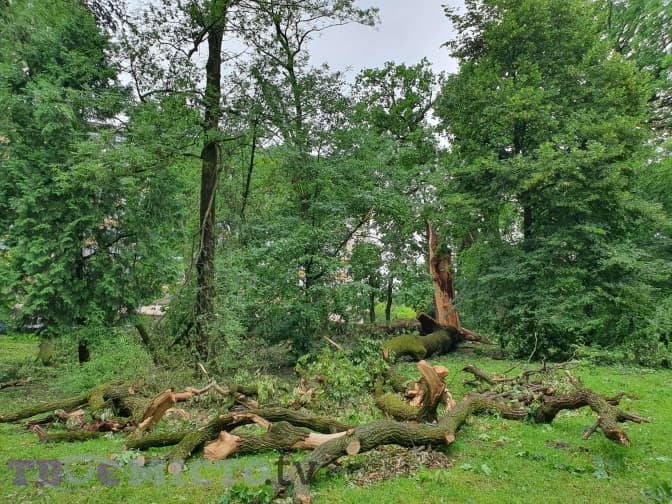 У парку Франка у Львові буревій знову наробив багато лиха. Комунальні служби не встигли прибрати наслідки минулої негоди, як учора, 30 червня, сталася ще одна, і знову повалила багато дерев.