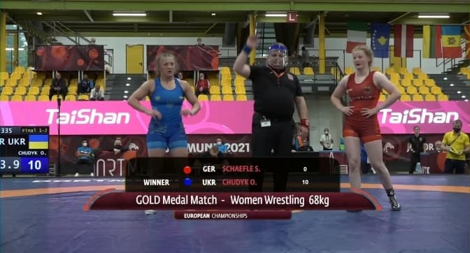 Наступною золоту медаль здобула 19-річна Оксана Чудик у категорії до 68 кг. У фіналі достроково (10:0) вона виграла у борчині з Німеччини. А перед цим Оксана перемогла суперницю з Польщі (4:1) та Білорусі (8:0).