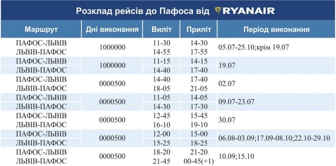 Авіакомпанія Ryanair розпочала виконання нових регулярних рейсів до Пафоса. Аеропорт «Львів» привітав водяною аркою перший новий регулярний рейс за маршрутом Пафос-Львів.
