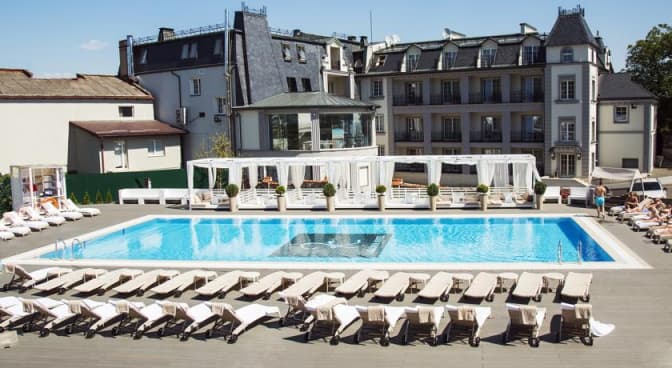 Однією з особливостей комплексу є басейн під відкритим небом розміром 50 на 25 м. Поблизу басейну розташовані альтанки, шезлонги та бар.