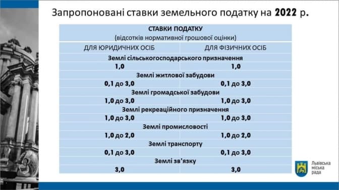 Раніше ставка у Львові була 1%. Тепер ставка на землю сільськогосподарського призначення становитиме 1% для оцінених, і 2% для тих, які не мають оцінки.