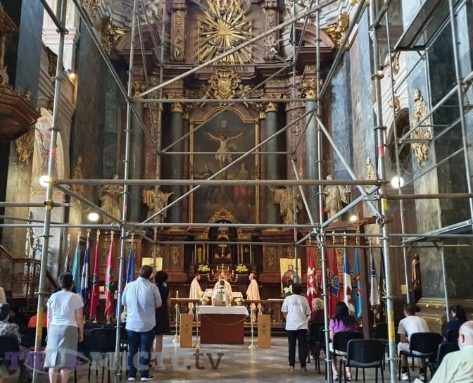 Незважаючи на те, що церква кілька років в риштуванні, тут все одно проводять богослужіння.