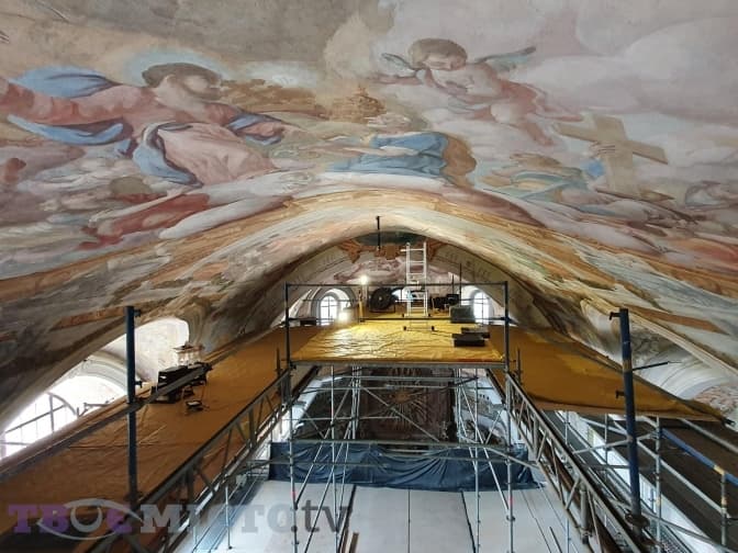 До слова, риштування у цьому храмі, одне з найбільших, де ведуться внутрішні роботи в Україні. Це майже 4 тис. куб.м. риштувань, а реставрація фресок триває на площі понад 1 тис.кв.м.