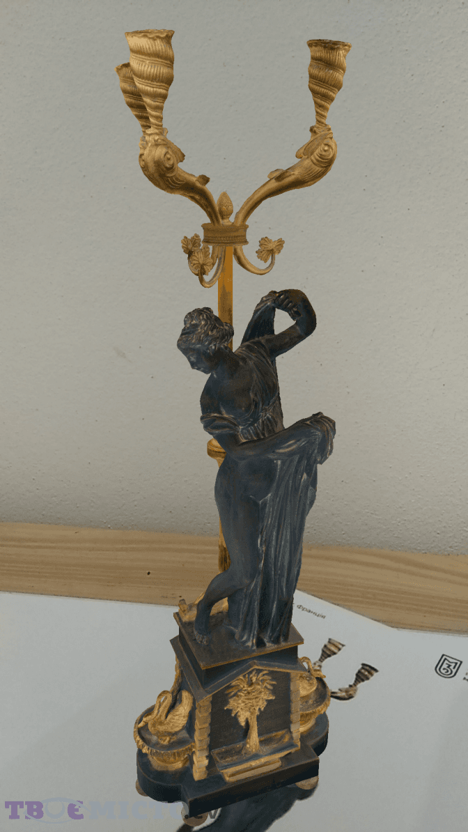Свічник вишуканої тонкої роботи майстра передано в найменших дрібницях. Експонат прикрашає зменшена в рази бронзова копія Венери Калліпіги. Вона покрита темною патиною, фігурка наслідує колір давньоєгипетських бронзових скульптур. Її висота – 78 см.