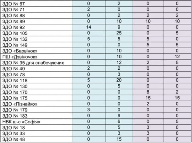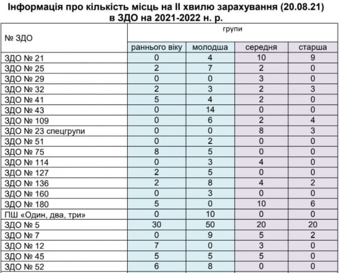 Перелік ЗДО з кількістю вільних місць у групах можна знайти тут.