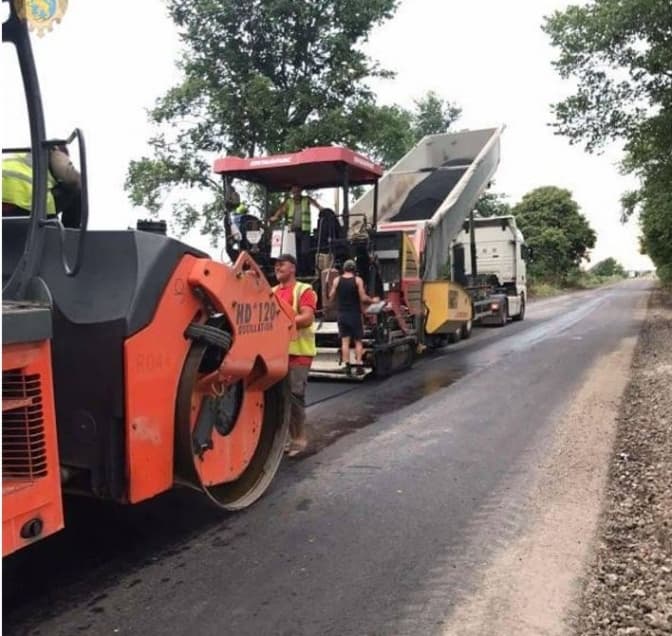 Зараз дорожники розпушують наявне дорожнє покриття, влаштовують основи з щебенево-піщаної суміші та укладають нове асфальтобетонне покриття.