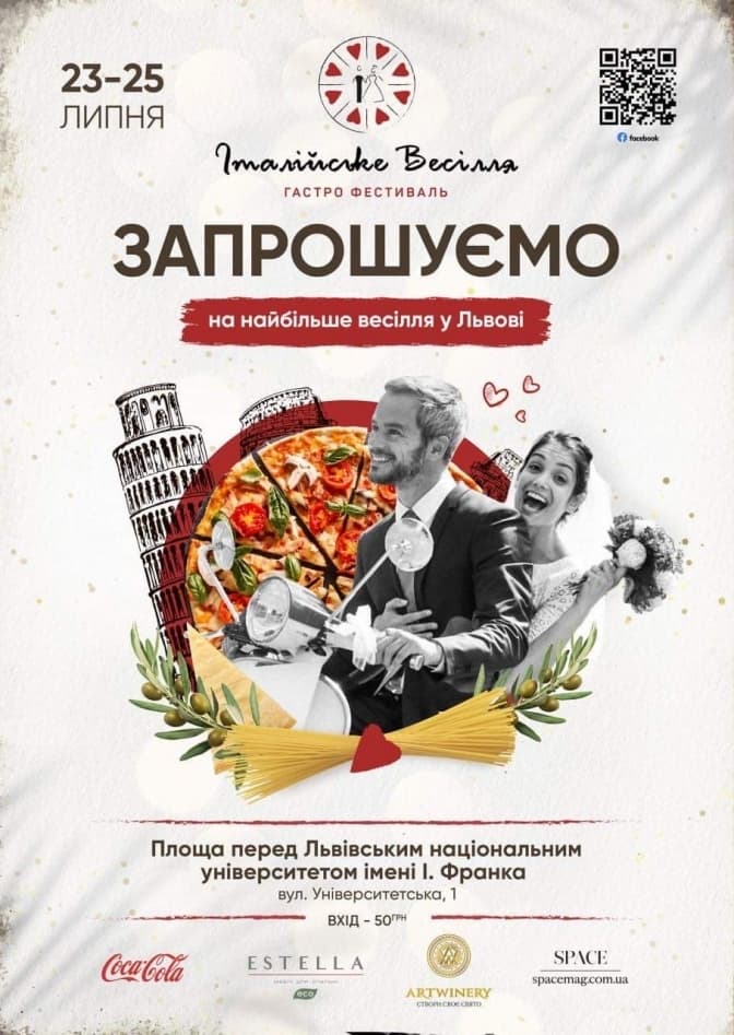 У Львові на площі біля університету імені Івана Франка 23-25 липня відбудеться гастро-фестиваль «Італійське весілля». Це свято має об'єднати львів'ян і гостей міста за одним великим сімейним столом, щоб насолодитися справжньою італійською кухнею, голосно співати й танцювати.