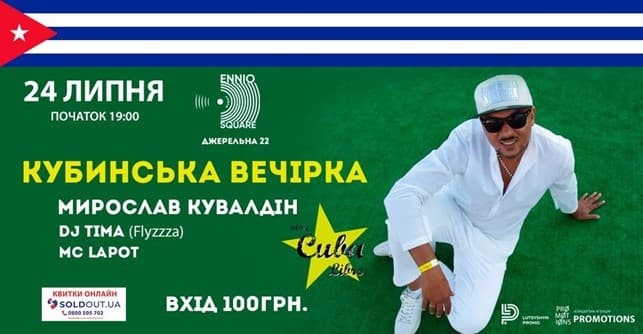Запальна Кубинська вечірка з Фронтменом Зе Вйо Мирославом Кувалдіним. Це будуть нестримні ритми латини, сальса, бачата.