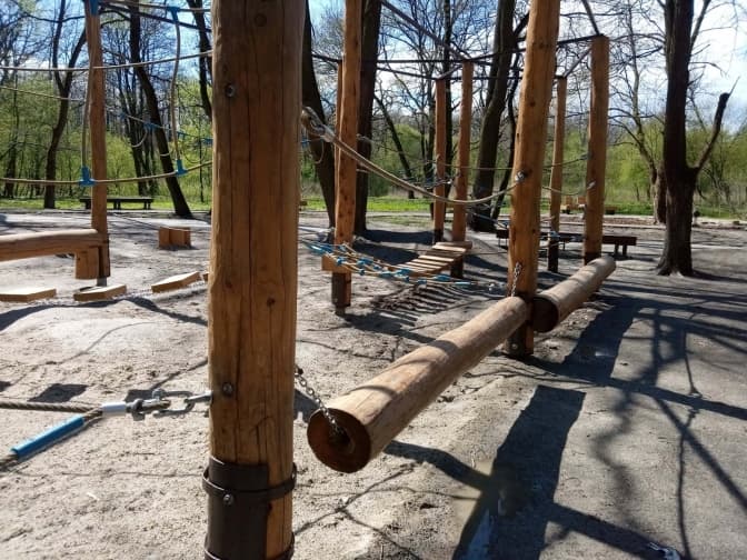 Один з перших таких у 2016-му облаштували у парку «Знесіння». Там є мотузковий парк для сімейного та корпоративного дозвілля. До речі, лазанки там розраховані і на дорослих.