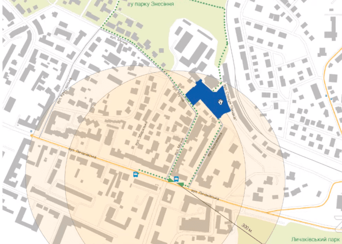 Територія, яку планують забудувати знаходиться у Личаківському районі, межує з парком Знесіння, «Стежкою здоров’я» у Шевченківському гаю та Львівською експериментальною кераміко-скульптурною фабрикою. Площа земельної ділянки становить 0, 6435 га . Вона знаходиться поза межами природньо-заповідної території. За генпланом ділянка розташована у зоні Г-4 – це громадська забудова, яка передбачає зведення культурних, спортивних та релігійних комплексів.