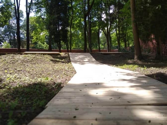 Наразі триває облаштування. Він розташовуватиметься поблизу верхньої алеї парку, тож зручніше дістатися з боку Академії сухопутних військ.