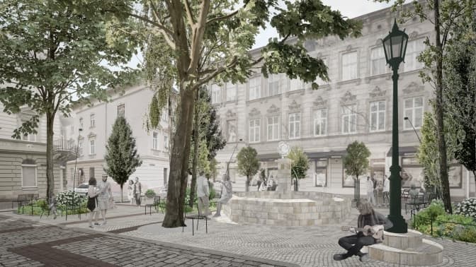 Цікаво, що на накритті криниці будуть викарбувані і написані імена мешканців цієї площі та найближчих будинків, які тут жили до війни, а замість звичайних лавок тут будуть крісла.