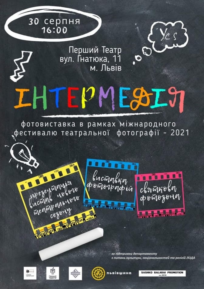 30 серпня у Львові у дворику Першого Театру розпочинається Міжнародний фестиваль театральної фотографії «Інтермедія». На виставці будуть представлені роботи фотографів з України, та ще 14-ти країн світу. Про це повідомила пресслужба ЛМР.