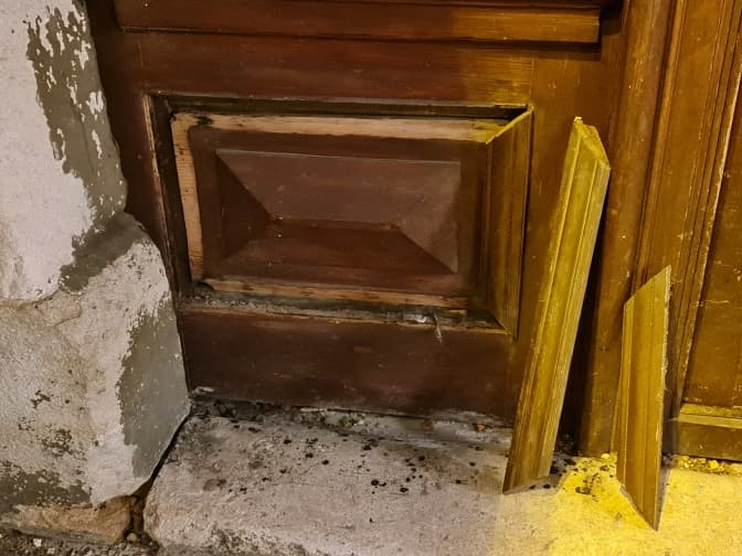 На площі Катедральній, 7/8 у Львові знищилась історична брама, яку реставрували у співпраці з GIZ. Про це на своїй сторінці у Фейсбуку написав львів’янин Михайло Іолін. Він також закликав відгукнутись майстрів, які могли б відремонтувати її.