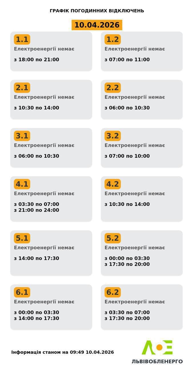 Львівобленерго оновило графіки відключень світла на п'ятницю, 10 квітня.