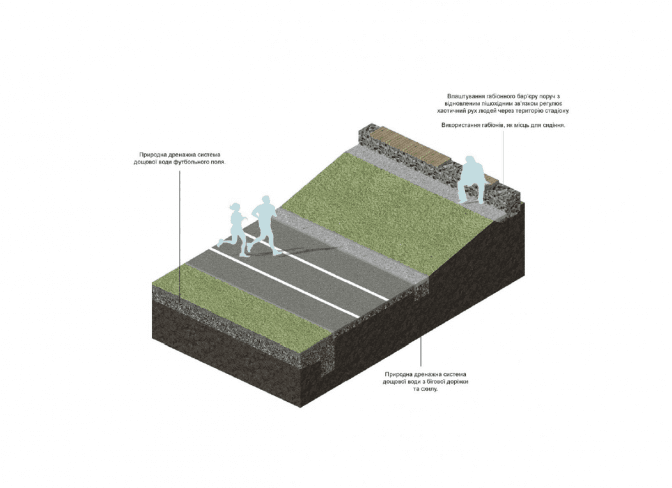 Застосували такий дренаж вздовж бігових доріжок, а також під футбольним полем. Стадіон відновили два роки тому, вода там не застоюється, а ґрунт навколо швидко стає сухим, навіть після інтенсивної зливи.