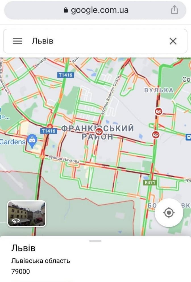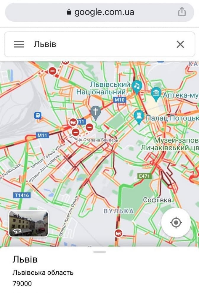 Згідно з даними Google Maps, станом на 09:07 год 9 вересня найбільш ускладнений рух у Львові є на вулицях: