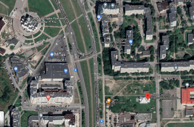 Територія, де планують звести кафедральний Собор Львівсько-Сокальської єпархії, розташована неподалік від церкви Різдва Пресвятої Богородиці УГКЦ, що на майдані святого Івана Павла ІІ, 1.