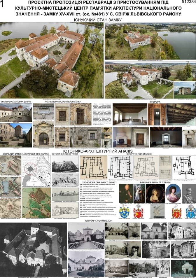 Переможця обрали серед чотирьох поданих пропозицій відновлення Свірзького замку XV – XVII ст. від учасників з Києва, Тернополя і Львова. У результаті найкращим журі визначило проєкт реставрації, розроблений творчим колективом з Тернополя на чолі з архітектором Юрієм Вербовецьким.