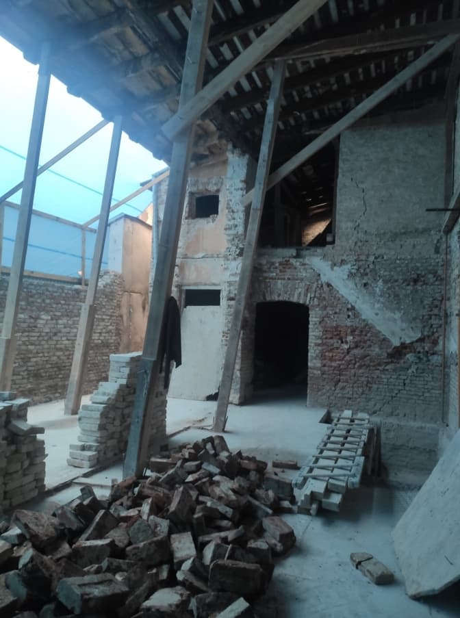 «Площа робіт досить велика. Крім того, там є внутрішній дворик, який наполовину відмурований, чомусь відсунута стіна. Роботи якраз ведуться саме там. На всій території багато будівельного матеріалу – швидше за все штукатурка, бо все обдерто. Чи були там якісь розписи, чи ні, на жаль, нам вже не вдасться дізнатися», – додає вона.
