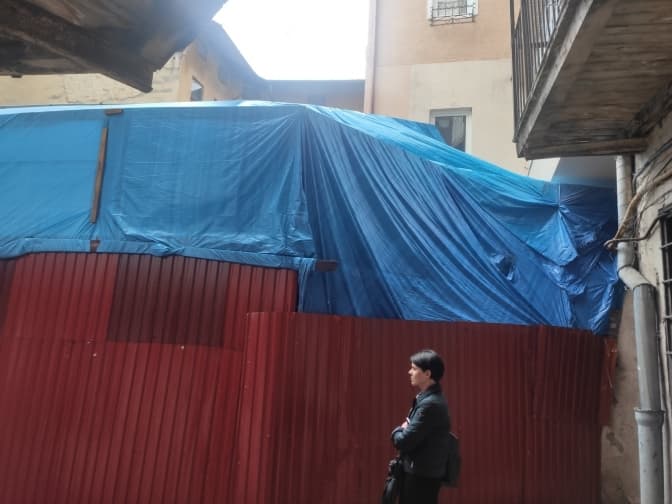 «Всередині також нічого не видно. Однак у дворі ми помітили, що є загороджена частина подвір’я, все щільно прикрито, щоб не було помітно нічого. Мешканці нам дали драбину, ми полізли нагору і побачили, що роботи таки ведуться», – уточнила Лілія Онищенко.