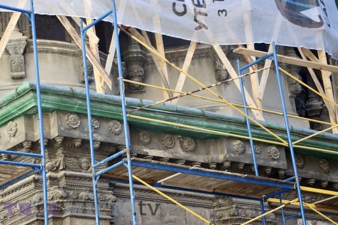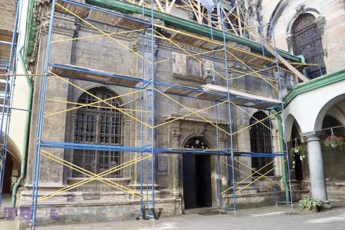 У Львові, біля каплиці Трьох Святителів, що на вулиці Руській, закінчили встановлювати риштування. Там розпочинають реставрувати дах. Скільки триватимуть роботи невідомо. Коштуватиме заміна даху майже 2 мільйони гривень.