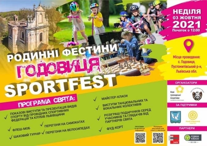 Цієї неділі, 3 жовтня, у селі Годовиця, що на Львівщині, відбудеться свято спорту – родинні фестини Годовиця SPORTFEST. Родинне свято відбудеться в межах проєкту «Під Зорею Пінзеля». Його проведуть біля унікальної пам’ятки храму Всіх Святих у Годовиці, який побудував у 1758 році архітектор Бернард Меритин і оздобив скульптур Іоан Георгій Пінзель.