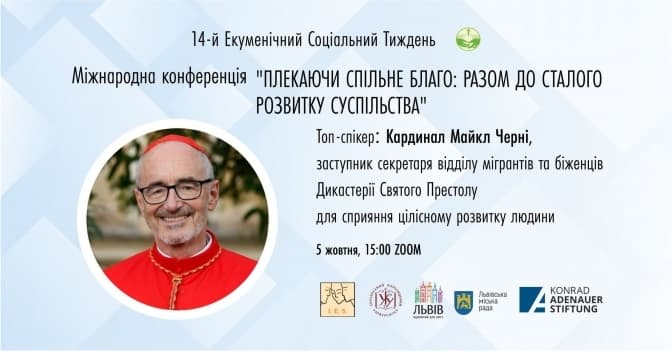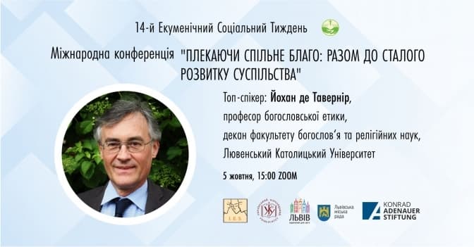 У Львові 5-9 жовтня відбудеться 14-й Екуменічний соціальний тиждень «Плекаючи Спільне Благо: Разом До Сталого Розвитку Суспільства». Розпочнеться він з однойменної міжнародної конференції, в якій візьмуть участь топ-спікери форуму: кардинал Майкл Черні, Дафіна Ґерчева, Йохан де Тавернір.