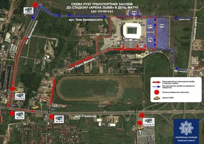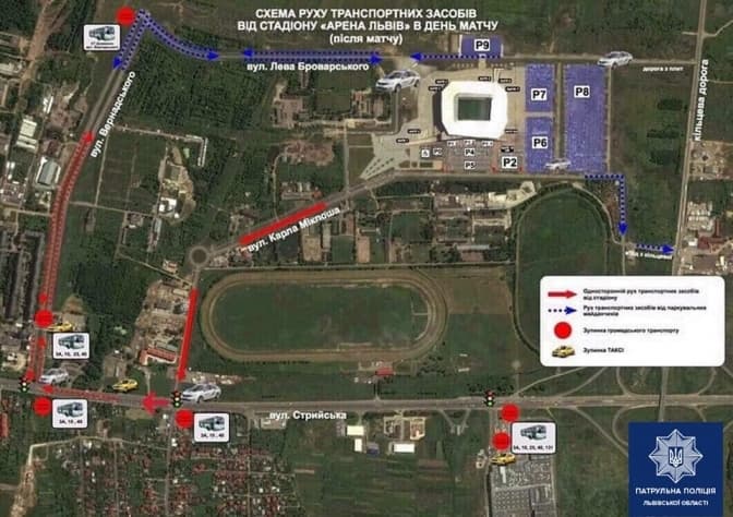 Крім того, як повідомляє Патрульна поліція Львівської області, виїзд зі стадіону буде здійснюватись за певним алгоритмом.