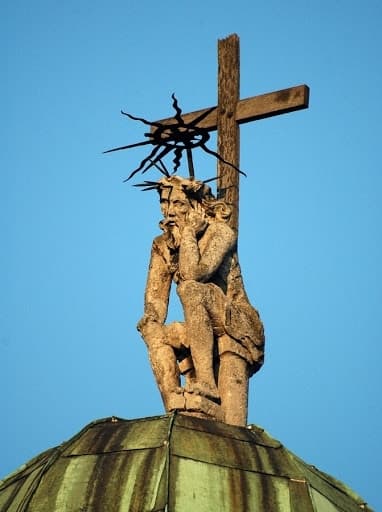 Також особливою є скульптура Христа, він сидить і наче у глибокій задумі, чи то сумі дивиться на місто підперши голову рукою. «Перехожий, зупинись і подумай, чи твоє страждання є більшим, ніж моє» – ці слова написані латиною під двометровою скульптурою задумливого Ісуса на даху каплиці.