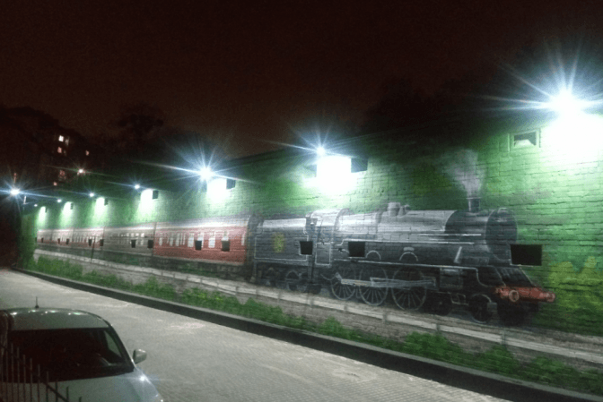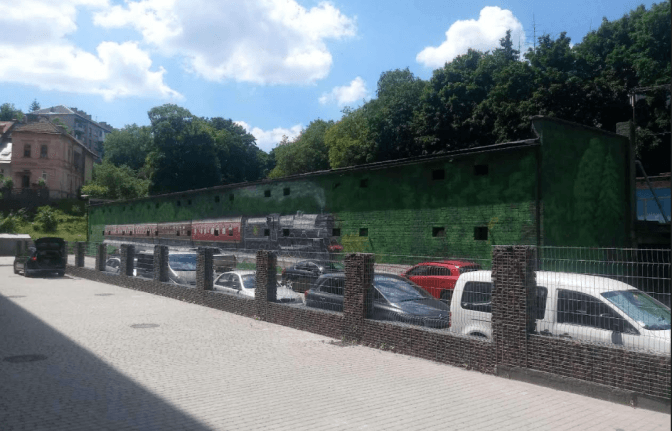 Малюнок обрали на основі відкритих зображень, адаптували до особливості геометричних розмірів об’єкту: домальовували вагони, дерева, змінили кольори.