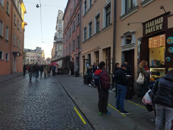 У деяких закладах громадського харчування у центрі міста у відвідувачів перевіряють сертифікати про вакцинацію чи тести на коронавірус, зокрема й у Grand cafe leopolis, що на першому поверсі у будівлі Ратуші. Тут також кажуть, що немає звичної кількості відвідувачів, заклад може бути заповнений на 50%.