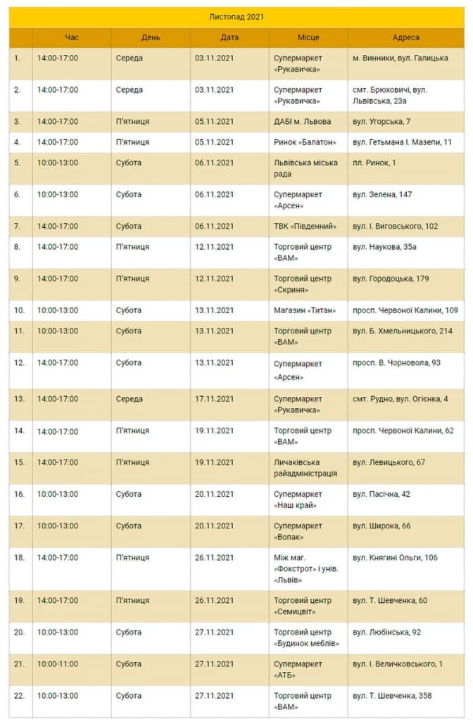 У Львові оприлюднили графік мобільних пунктів збору відпрацьованих люмінісцентних ламп, термометрів і батарейок. Відходи збирають безкоштовно лише від мешканців Львова, Винників, Брюховичів та Рудного в безпечній тарі. Їх можна здати до 27 листопада.