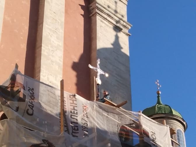 У коментарі Тvoemisto.tv керівниця управління охорони історичного середовища ЛМР Лілія Онищенко розповіла, що хрести на трьох банях відновлювали півтора місяці. Реставратор по металу – Юрій Миколаїшин.