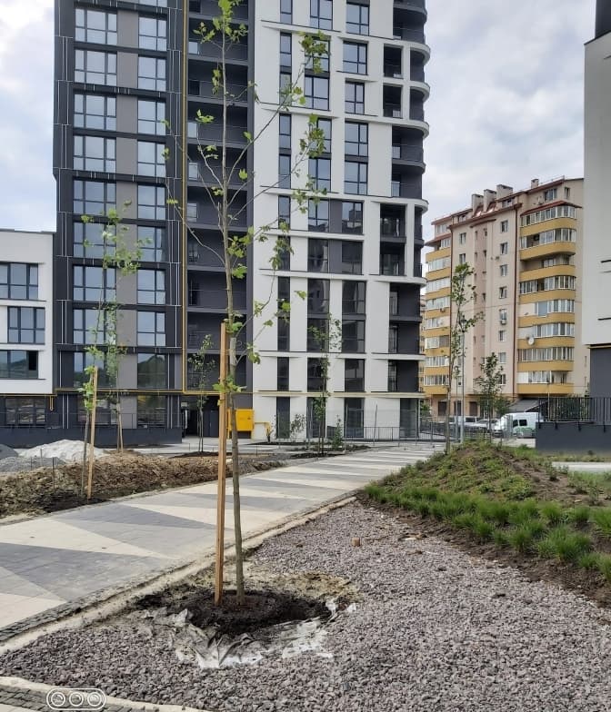 «Від виникнення ідеї до її втілення пройшло кілька місяців. Мешканці збирали гроші (рекордну суму для нашого масиву), писали заяву з проханням на дозвіл насипати пагорб, збирали інформацію про рослини, шукали варіанти, вибирали, копали ями, розвозили грунт, садили, укріплювали, підв'язували, поливали. І ось результат», – каже мешканка будинку Наталія Верба.