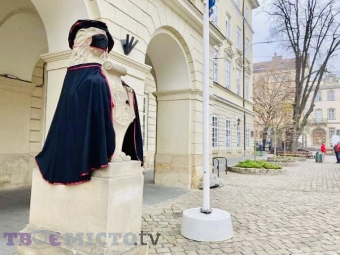 На площі Ринок у Львові левів, що стоять на вході до Ратуші, до Дня студента одягнули у мантії та маски.