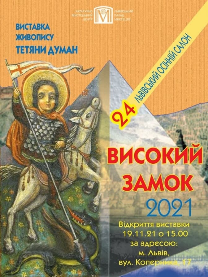 Сьогодні, 19 листопада, у Палаці мистецтв відкриють персональну виставку живопису української художниці, мистецтвознавиці, волонтерки, активістки Помаранчевої революції та Революції гідності Тетяни Думан.