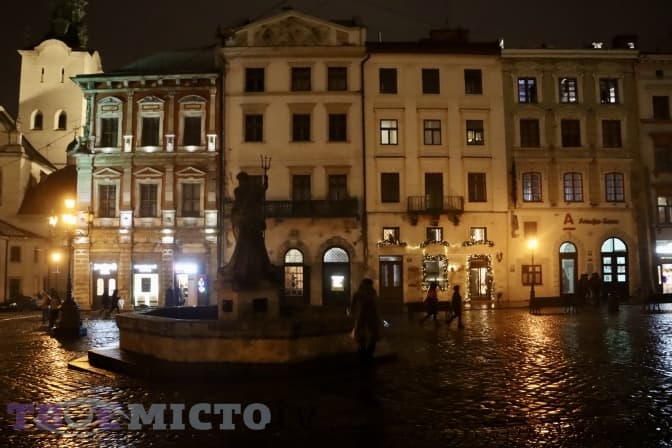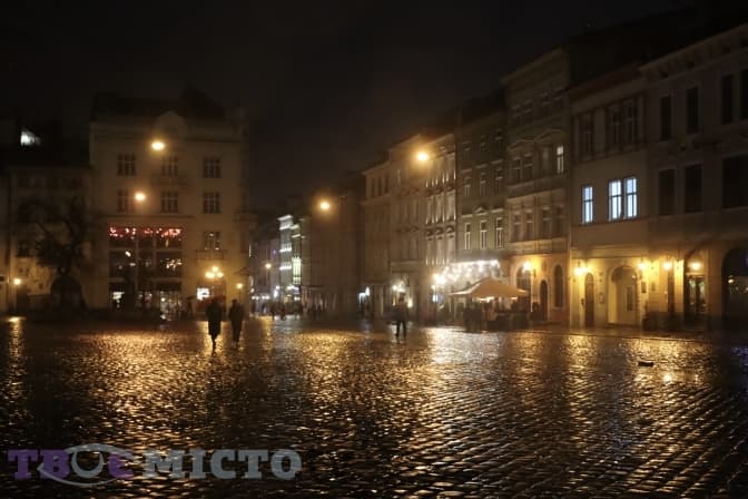 Вдень місто туманне і дощове, а ось ввечері зачаровує неймовірною красою. Пропонуємо атмосферний фоторепортаж вечірньої площі Ринок.