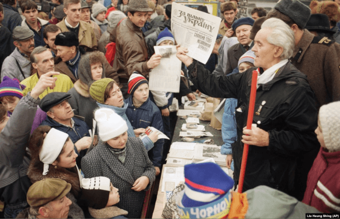 Київ, 30 листопада 1991 року. Під час агітації в центрі української столиці у переддень Всеукраїнського референдуму за незалежність України
