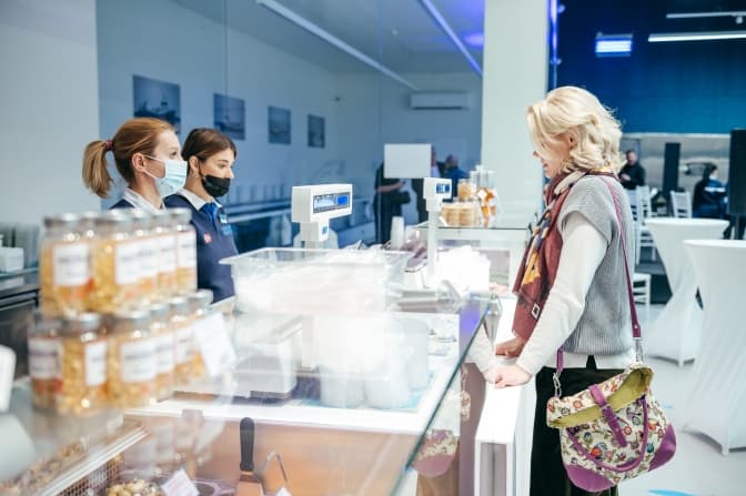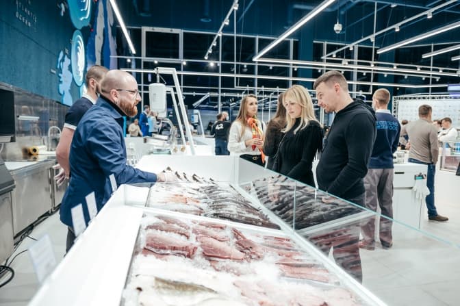Оскільки девіз компанії: «Ми – експерти в рибі» – на прилавках магазину представлений великий асортимент морепродуктів природного вилову, а також фермерська охолоджена риба з Норвегії та від перевірених партнерів компанії з інших країн.