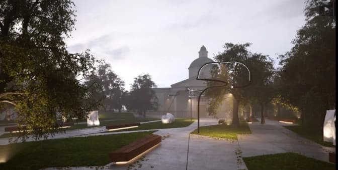 Йдеться про площу Олекси Гасина, що на перетині вулиць Коперника і Стефаника. Там у 2015 році вирішили облаштувати простір пам’яті співака Андрія Кузьменка із гурту «Скрябін». Утім роботи вдалось розпочати лише у грудні цього року. Наступного року обіцяють завершити.