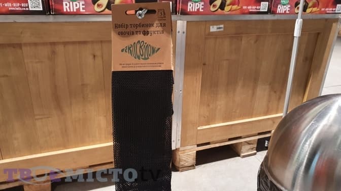 У супермаркеті «Сільпо», що у «Спартаку», у наявності досі є пластикові пакети, але також є альтернатива – торбинки для овочів та фруктів, щоправда висять вони нижче за всі інші пакети. Коштує він 129 грн, але його можна використовувати багато разів.