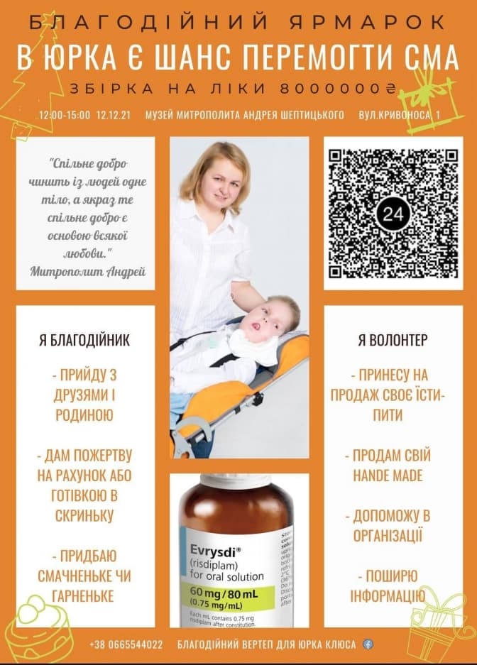 У Львові збирають гроші на допомогу 11-річному Юрчику Клюсі зі СМА, який живе у Дублянах поблизу Львова. Йому потрібні дорогі ліки Evrysdi та Spinraza. Для цього у місті влаштують благодійний вертеп.