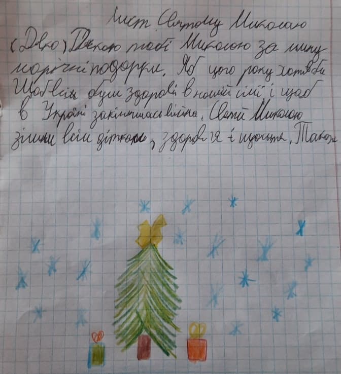 «Коли я ходив у садочок, то мріяв бути підводником, а потім підріс і зрозумів, що до моря далеко. Пізніше хотів бути директором шахти, але почув, скільки нещасних випадків там буває, теж передумав. Тепер, у 5 класі, на уроках праці вчитель нам показав, як працювати з деревом. Мені дуже сподобалось, і я хочу бути майстром і виробляти меблі. Також я думав про те, якби був президентом. Мабуть, в першу чергу вирішив би всі питання, щоб закінчити війну», – розповів хлопчик волонтерам.
