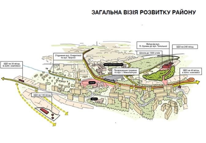 «Працюючи над цією концепцією, ми зважили, скільки мешканців є, скільки буде у перспективі з огляду на роздані містобудівні умови та обмеження. Нині там є щільно населені квартали, лікарня швидкої допомоги, Замарстинівський парк. Перші кроки для посилення інфраструктури – це забезпечення належного рівня території школи №97. Йдеться про завершення спортмайданчика, потрібно сформувати бігові доріжки зі спеціальним покриттям, а також провести реконструкцію благоустрою школи, щоби вона стала серцем мікрорайону, головним громадським простором», – каже Коломєйцев.