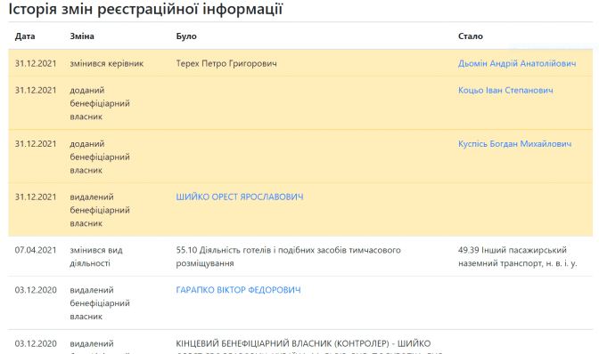 ТзОВ «Захар Беркут» і ТОВ «Гірськолижний комплекс «Волосянка» наприкінці минулого року змінили керівників і бенефіціарних власників, написало видання «Дивись.інфо»