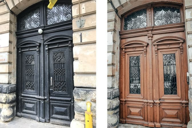 «Спочатку здавалося, що ці двері в хорошому стані, а більшість елементів збережені. Але під шаром чорної фарби ми знайшли соснові вставки, які були вже понищені. Очевидно, їх до дубової брами додав попередній реставратор. Так довелося поновлювати дуже багато вставок», – каже реставратор Ростислав Малецький.