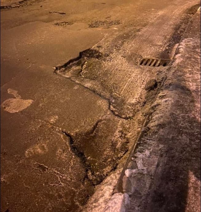 «Ями утворилися у наслідок ремонту труб водопостачання (які кожного місяця ремонтують в одних і тих самих місцях, але після ремонту лише посипають щебінем)», – пише Оля Яворська.